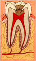 Decay that has infected the pulp champer, which contains nerves and blood vessels